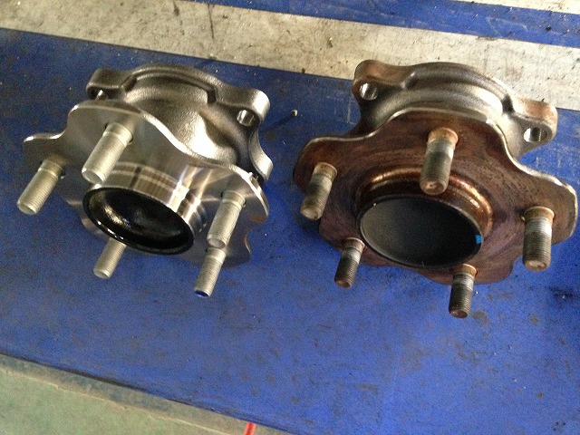 ご依頼ありがとうございます。走行時異音がするとの事で、サウンドスコープによる走行テストをするも確認できず、ご依頼様の運転による走行確認をすると左リヤより異音確認できましたので、リヤハブベアリングを確認・交換いたしました。部品は持込みにての交換です。