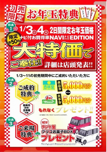 2016年の初売りはお得がいっぱいです。