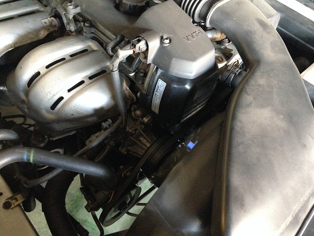 低年式・多走行車両で、20万KMでタイミングベルト交換時期でしたので、お客様とご相談して交換しエンジンヘッドカバーよりオイル漏れしていましたので、一緒に交換いたしました。その他消耗部品交換と点検し、排気ガスの関係でスロットバルブを清掃いたしました。