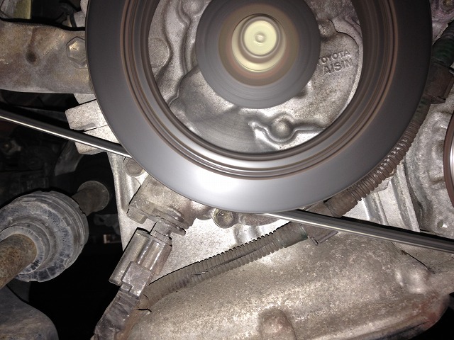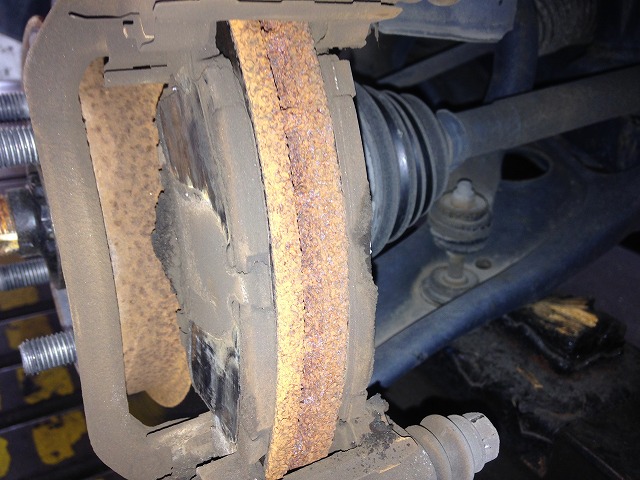 「ブレーキを踏むと異音がする」「ベルト廻りより異音がする」上記2点で入庫、前後ブレーキ点検するとフロントディスクブレーキパットない為、交換を実施致しました。もう1点は、ファンベルトの削りカスがありベルトも痩せてきている為に、こちらも交換を実施致しました。